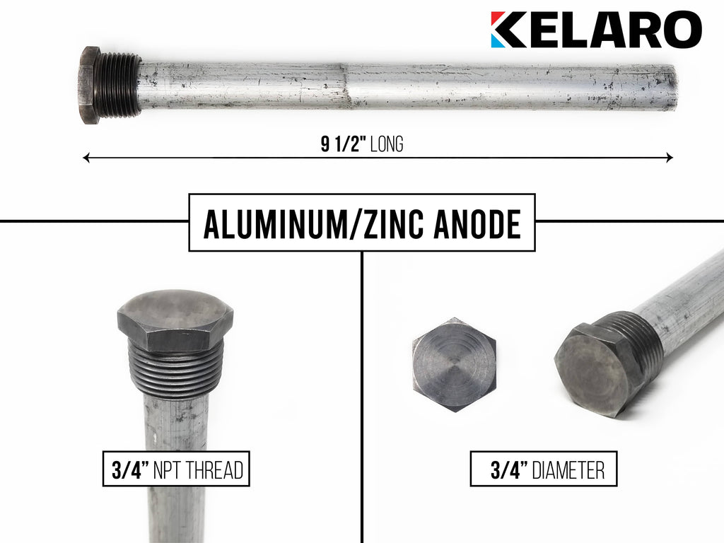 High Quality Aluminum Zinc Anode Rod - 9.25" Long with 3/4" thread. DIY replacement in minutes. Requires 1-1/16" Socket for installation, not included.
